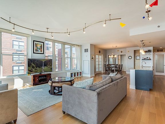 Maxwell Luxury Living. Flooded with natural light, this 1915 SqFt corner 3 bedroom plus den can easily be used as a 4 bedroom. Extra large kitchen features granite counters, custom espresso cabinets, stainless steel appliances and long island that overlooks the living and dining room. Expansive living room plus separate dining area allow the space you deserve. Master bedroom easily fits a king bed and has multiple closets including a walk in outfitted with custom closet organizers. master bath has dual sinks plus separate shower and soaking tub. Maxwell Community features 24 hr concierge, 2 gyms, 2 pools, 2 children's playrooms, community room w theatre and DIRECT NYC and Hudson River Views and landscaped roof top terraces with bbq'a tv and fireplace. One parking spot included. Commuters paradise with ferry and bus around the corner or take the private shuttle to the path. Available 10/1/20