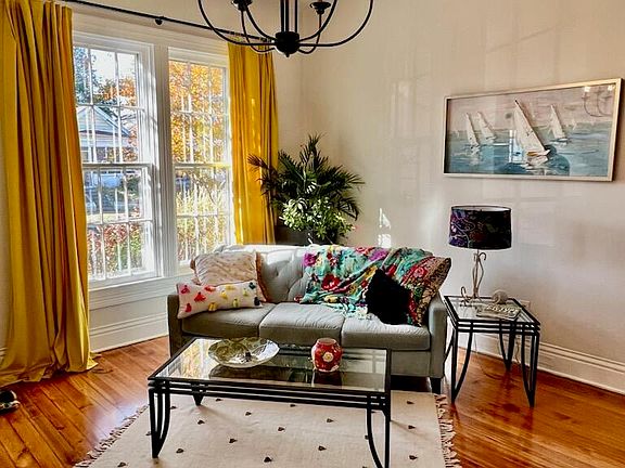From the front door, you first notice the show stopping tiled fireplace, the walkthrough highlighting decorative trim over 100 years old, and the reflective sheen of newly refinished original hardwood floors. The kitchen is next with a large butcher block island surrounded by gorgeous granite countertops with all new cabinets and appliances, with a top-of-the-line three-drawer refrigerator, standard-sized dishwasher, gas range with stainless hood (on the beautiful brick fireplace wall), stainless farmhouse sink, modern microwave, and another show stopping-design - the Carrara marble backsplash. You can also enter the kitchen from the side door located down the sidewalk and on the small porch, perfect for leaving your umbrella or reading a book on a bench. Looking from the kitchen, you can see straight into the private backyard allowing for light and a feeling a openness to the home. After leaving the kitchen, the first stop down the hallway is the guest bathroom and the first full bathroom with a gorgeous custom-tiled shower. Next is a small bedroom with a large closet including a storage area with removable shelving to allow attic access. This is a great space for a nursery, kids room, guest bedroom, office, or workout room. Next, the primary bedroom is very large with a walk-in closet with laundry set-up for your convenience. The fully-tiled primary bathroom is spa-inspired with custom features including a soaker tub, vanity with built-in electrical, wooden slanted ceiling, and a walk-in rain shower with a nook and corner seat. At the end of the hallway, as you head outside, you walk through a room that is the perfect set-up to personalize for your needs. The glass door and multiple windows - although very private - is the perfect backdrop for meditation, yoga, plants, coffee nook, reading room, or even another bedroom. The outside boasts a mature, well-groomed landscape with large evergreen trees for privacy and a fully fenced in backyard. The flowers and plantings were designed to offer blooming color and interest throughout the seasons. A new deck and fire pit were added to create a space for relaxation or entertaining. Other notable features include super high ceilings, a smart thermostat, additional storage in the inside access cellar, storm windows, new/refinished windows, and preservation of historical architecture throughout. If you love quality turn-of-century homes with modern amenities, you will love this home!