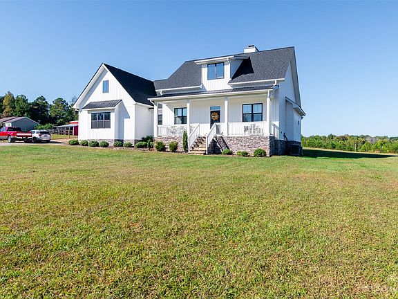 Bring the horses! This lovely equestrian gem is tucked off the main road & features open pastures and countryside views. Located just 20 minutes from Mooresville, Salisbury and Statesville in beautiful western Rowan Co. Home is only a few years old and is the popular modern farmhouse style, with covered front & rear porches, split bedroom floorplan with open kitchen and huge island, wood-burning stone fireplace in the vaulted greatroom, formal dining room, spacious bonus room/bedroom 4 with full bath over garage. Outside a 3-stall barn with run-ins for your horses awaits, plus an extra storage building for equipment, etc. Land to the right of home is also included although not fenced in. Could be extra pasture area, a hayfield, or location for a riding arena. Watch the deer and turkey from your back porch!