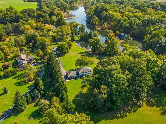This estate has it all! Opportunity awaits at this 5.73 acre estate on Rice Lake in Chesterton. This 4 BR 2 BA home with 2.5 car attached garage boasts two outbuildings! The highlight is an exceptional timber built barn with custom wood detail, heat, air, 3/4 bath and finished upstairs, perfect for yoga or art studio or air bnb. This talented homeowner used it as a woodworking shop downstairs and office upstairs. Unattached barn style garage with attic will excite car collectors and engine fanatics. This property is ideal for horses and equestrians as well! The residence has a main floor bedroom and 3/4 bath and laundry as well as open concept kitchen and family room with fireplace. Upstairs are 3 spacious bedrooms including master en-suite with huge bath and plentiful closets. All 3 structures overlook 25 acre Rice Lake, stocked for fishing, and perfect for paddle boarding, kayaking and relaxing on a pontoon. Embrace the peace & serenity this secluded property offers.