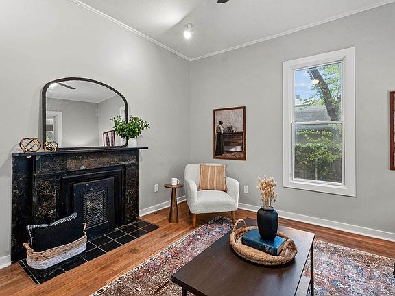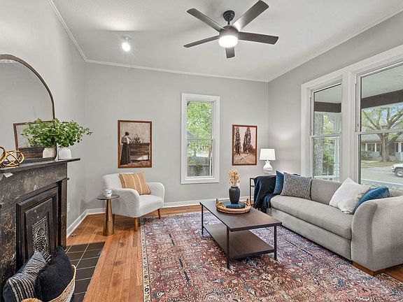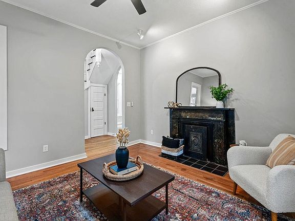 Welcome to this freshly Remodeled 3 bed 2 bath home. As you enter, you're greeted by original hardwood floors that whisper tales of the past, complemented by high ceilings adorned with intricate molding, echoing the craftsmanship of a bygone era. The living room exudes warmth, featuring a cozy fireplace where memories are sure to be made. The kitchen is a chef's dream, boasting stainless steel appliances, custom cabinetry, and elegant countertops that harmonize with the historical essence of the home. Adjacent is a delightful dining area, perfect for hosting intimate gatherings or family dinners.