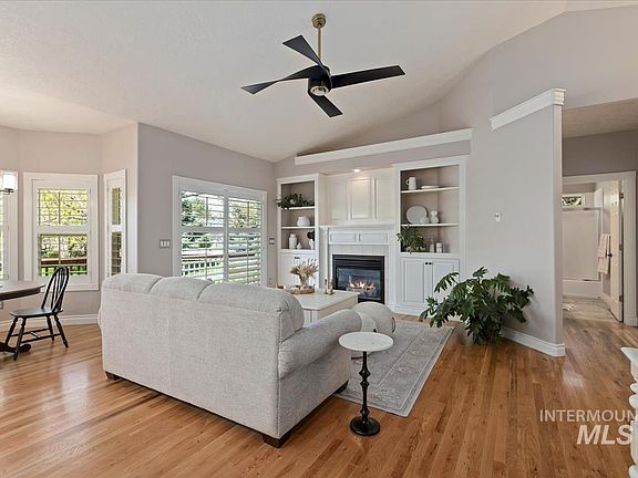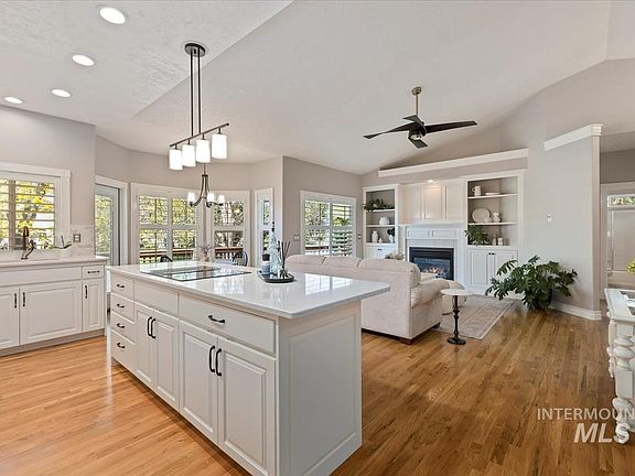 This dreamy, light and airy 4-bedroom, 2.5 -bath custom home sits on a .25-acre corner waterfront lot in a desirable established community. Thoughtfully designed with both comfort and elegance, the open-concept living areas flow effortlessly into the modern updated kitchen. The soft natural palette, high ceilings, and abundant windows that bathe every room in sunlight makes this home a must see. With only one meticulous owner, the home has been fully updated and is move-in ready. Inside, you'll find spacious living areas, beautiful plantations shutters, thoughtful finishes, and an oversized 3-car garage offering ample storage for a small boat or trailer. Outside is a park-like backyard with a peaceful deck over looking a beautiful pond-perfect for relaxing or entertaining. Located in an established neighborhood near Eagle Bike Park, you'll enjoy endless trails for biking and hiking. Enjoy the paths through the neighborhoods with scenic ponds and waterfalls lining the paths. This won't last long!