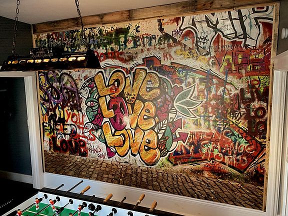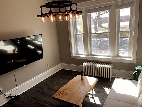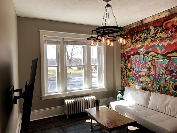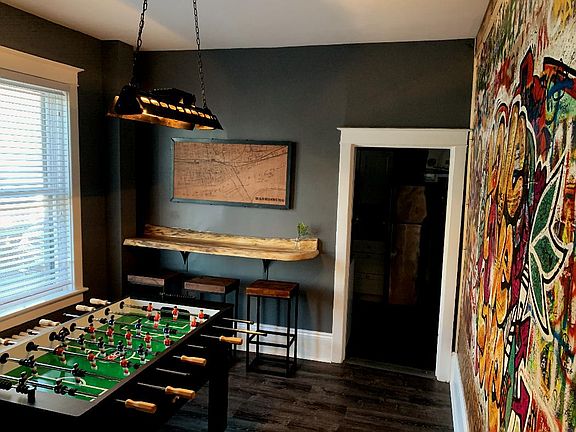 A unique opportunity to stay on the first floor of one of the oldest riverfront buildings in Harrisburg; built circa 1850. Inspired by the street this Urban Boho gem with graffiti murals and steampunk chandeliers embrace the funky vibe of the surrounding Midtown neighborhood. PA woods are on full display with a Cucumber Tree live edge floating bar in the game room and a live edge Ash Coffee Table in the living room. Both were handcrafted in Mifflin county, PA using wood from the artisan's property. Welcome home to a space that is distinctively urban and edgy. Many fun touches like a regulation size Foosball table located in the game room. The living room is equipped with a 65" inch wall mounted Roku TV with Netflix and Amazon Prime video. Fully furnished rental includes all utilities including high speed internet, Netflix and Amazon Prime video as well as in unit laundry and one off-street parking space.
