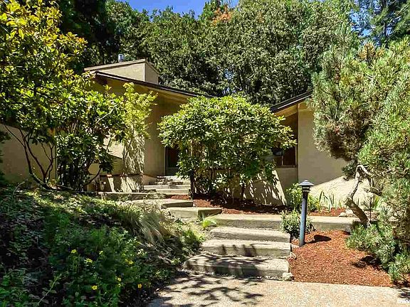Accepted Offer with Contingencies. Be captivated by this beautiful Spanish inspired design 3 bedroom 2 bath home in quiet neighborhood close to campus. Sweeping archways, dining room open to living room with large windows and southern exposure. Over half an acre, low maintenance and backyard a secluded wilderness retreat. Over 2000 sq ft, most is single level. Tons of kitchen storage.