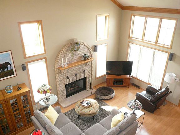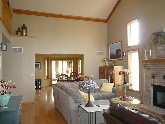 Beautiful Open Floor Plan. Great room with 22 ft. ceiling, crown molding, large windows for lots of natural light and custom arched fireplace. Kitchen with newer stainless steel appliances and dining area with wainscot and crown molding which opens with slider to private porch with screens/glass windows. The patio is newer with access from porch for evening enjoyment. First fl. master suite with walk-in shower. 2 Bedrooms upstairs and full bath. The finished LL rec room very spacious for all entertaining enjoyment. Plus additional room could be an exercise room. SBR