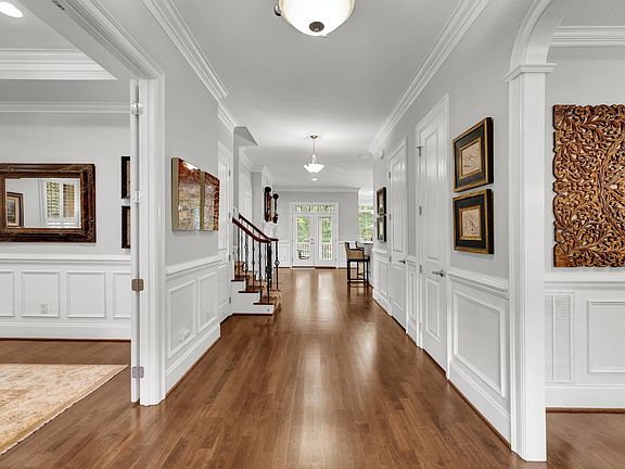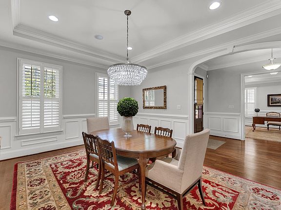 STUNNING Quality Built Dixon-Kirby ALL Brick Home w/ extensive front porch and 3 CAR GARAGE located in the heart of Chapel Hill! Main floor boasts natural light in open floor plan, with formal dining and living room. Large bright family room featuring double sided fireplace. Updated kitchen features cherry cabinets, granite counter tops, double ovens, gas cooktop, & butler pantry/wet bar. 2nd floor owners suite w/ luxurious owners bath w/ large WIC and screened porch off bedroom. Generously sized additional bedrooms on 2nd floor w/ options for bedroom OR bonus room as well. Spacious basement supports additional living space including: bedroom with full bath, workout room/home office, den, patio, flex room & more storage! Pre-framed for future elevator. Outdoor living at its finest- overlooking wooded fenced flat back yard nearby greenway access. Nearby Rashkis Elementary, Village Shops & Dining, Pool, Golf, Playgrounds, Parks and all that Meadowmont has to offer!