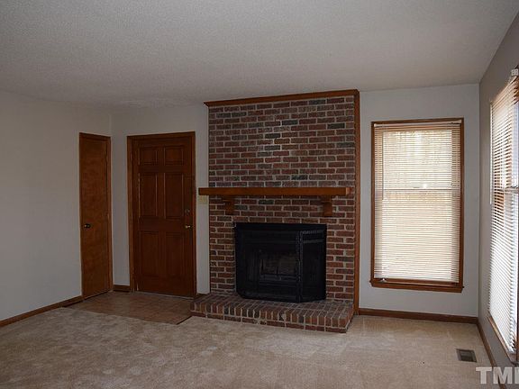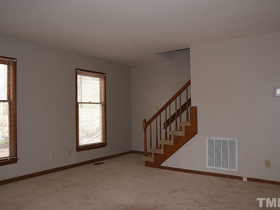 Available for 4/10/2018 move-in. Private 2 story end unit duplex nestled in single family home neighborhood and right next to South Garner Park, including ball fields, playground and picnic area. Enjoy wood burning fireplace in living room. The spacious eat-in kitchen offers tons of cabinets and counter space plus updated black appliances. Relax on large deck overlooking wooded backyard. Both 2nd floor bedrooms have full baths and good closet space. Great storage throughout. No pets or smoking permitted.