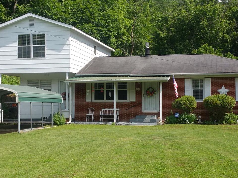 Come to the mountains of Tennessee to this wonderful property that joins the river on one side of the road and on the other side is a home with 4 bedrooms, 2 full bathrooms, living room, kitchen with breakfast area, formal dining room, sitting room, office (or could be converted to 5th bedroom); laundry room, screened in back porch; covered front porch; good well water; mountain view and river view; barn, corn crib, lawn mower shed, 2 storage building one with room for can food, home has heat pump, security system, range, refrigerator, dishwasher, washer, drye and blinds stay with home; has been fenced for goats; stream behind the house; detached carport; fields and woodland has not been timbered since 1970's according to seller. Lake is approximately 2 minutes way from property.