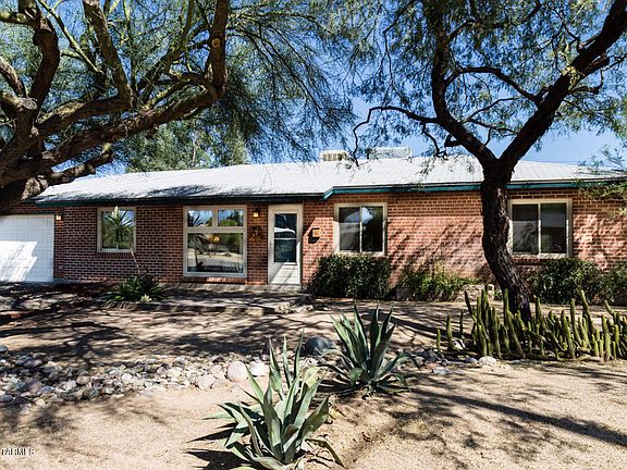 Classic brick beauty w/tons of curb appeal & many upgrades!Newer dual-pane low E windows throughout.The house has been replumbed with copper.Dual cooling for energy savings.Masterbed-bath addition was built w/matching materials & impeccable craftsmanship & attention to detail.Living area has gorgeous plank tile.New carpet in the master bdm.Hall bath has newer vanity,light & plumbing fixtures,shower surround & flooring.Check out the oversized 1 car garage for all your tools & toys.The front yard boast mature shade trees all on drip irrigation.The back yard has a large lawn area fully sprinkled & many mature bushes all on drip irrigation, plus a covered patio & storage room.Last but not least an extra large shed for all your yard tools or just use it for storage. Bring your highest and best, this house won't last long. One of the sellers is a licensed real estate agent in the State of Arizona.