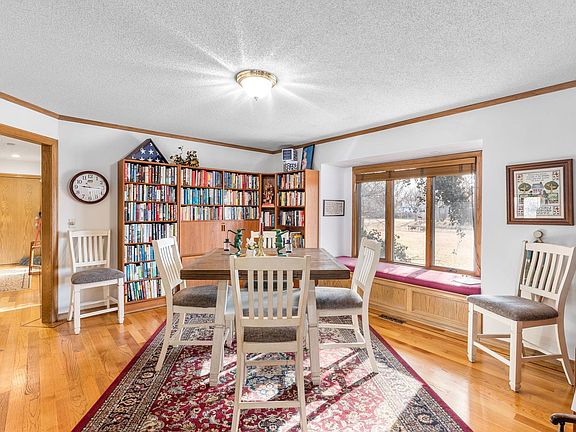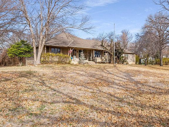 Country Living just minutes from Derby and Wichita! You will love coming home to this sprawling ranch situated on almost two acres and that features a great floor plan for easy entertaining, hardwood floors with a walnut border, lovely living room with hardwood flooring and carpet inlay, fireplace with stone surround, vaulted ceiling with wood beams, ceiling fan, and cove lighting, formal and informal dining areas, and light and bright kitchen with tile backsplash, granite island with additional cabinet space and breakfast bar, cabinets with pull-out shelving, pull-out trash drawer, pantry, and built-in desk to make bill paying a breeze. The main floor laundry is conveniently located right off the kitchen and features hardwood flooring, folding counter, cabinets, and shelving. Spend peaceful nights in this spacious main floor master suite complete with carpeting, large windows, trayed ceiling, walk-in closet with built-ins, office with built-in desk and shelving, and private bathroom with tile flooring, jetted tub, linen cabinet, and glass block window to bring in the natural light. Enjoy hanging out in this fabulous finished basement complete with large family room with wood laminate flooring, French doors to the patio, fireplace with stone surround, recessed lighting, wet bar, and enough room for your favorite game table. This lower level also features three spacious bedrooms, two full bathrooms, and ample storage space with storm room. Sit back and relax out on the covered deck or patio areas overlooking the inground pool with wrought-iron fencing surrounding it for extra safety, mature trees, and lots of room to run! Welcome Home...Your dream home awaits!