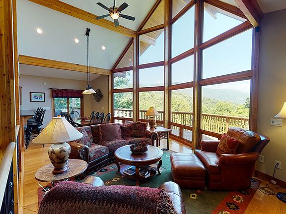 Beautiful, high end Lindal Cedar Chalet with stunning OMG mountain views! This spectacular property is in a private, peaceful setting between Lake Fontana and Santeetlah, with hiking trails and streams to explore! Step inside to the large living area full of natural lighting, gorgeous rock fireplace and stunning views from all levels. Kitchen has granite countertops and SS appliances with half bath off the main area. MASTER ON MAIN with double vanities. All bedrooms have full baths with tile showers. MULTIPLE BONUS ROOMS and full basement for the whole family. This home has more features than can list with attention to detail on every level. You won't regret seeing this one so CALL TODAY!
