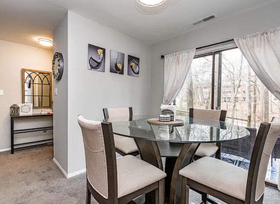 This unique gem is central to PNC Arena, NCSU, Downtown, Lake johnson, Cary and so much more! Both bedrooms are equipped with a queen-size bed with extra pillows. The jack & jill bathrooms share 1 shower to both bedrooms. Both bedrooms are on the second floor with a larger dresser and nightstands to keep your clothes organized during your stay. The living room is equipped with a smart TV, lots of games & blankets for a fun night in. There is a sectional that transforms into a full-sized bed. There is a washer & dryer on the second floor with ironing boards and irons for longer stays. The kitchen is equipped with many cooking essentials.