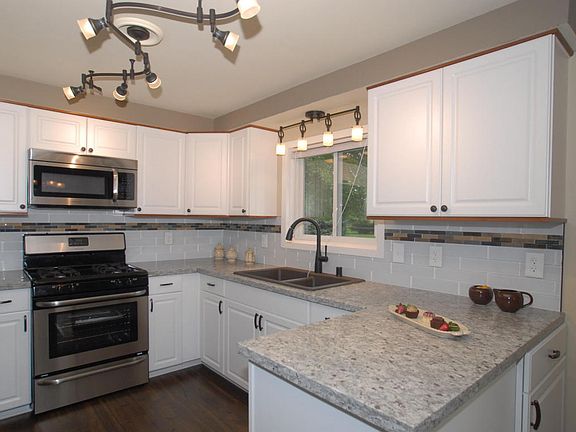 Absolutely Move-in Condition Contemporary Ranch in a Great Neighborhood! Featuring a Completely Remodeled Gourmet Kitchen w/ new cabinets, granite tops, custom mosaic tile/stone splashes and Stainless Appls with dishwasher! The New Engineered floors are Beautiful! Open Concept LR/DR/KT with Patio doors that lead out onto the deck. Large Bedrooms. Awesome Remodeled Baths! First floor laundry. Fabulous private lot with Large deck. Spacious renovated rec room. Bring your fussiest buyers, they will NOT be disappointed. This home is priced to sell FAST!