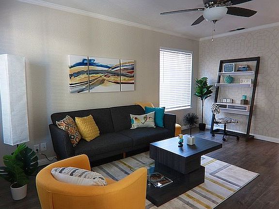 When you walk into this home, it has a very open and modern feeling. The backyard is great for entertaining. It is fully hardscaped. The bedrooms are large and very comfortable. Shelves and extra cabinets have utilized the space efficiently.