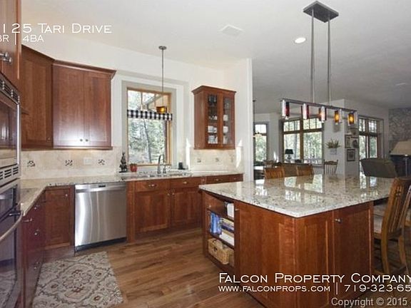 Gorgeous Colorado living with space to breathe! This custom 5 bedroom/3.5 bath ranch home offers over 4200 square feet and all the bells and whistles for luxury and comfort! The kitchen features solid granite counters, Bosch stainless steel appliances, cherry cabinetry, instant hot water and more! Enjoy the open and airy living room with hickory plank floors, gas fireplace with stone surround, built-in audio, and walk-out to large composite deck. The main level master is a dream, with another cozy gas fireplace, huge walk-in closet, heated porcelain bathroom floor, jetted tub, separate shower with beautiful tile and two shower heads. The main level also features a large office with handsome full-wall built-ins. The finished basement includes high ceilings, a fully furnished workout center (can be stored if needed), kitchenette, a third fireplace with stone surround, and French door walk-out to the gorgeous landscaping with fountain, pond, and walking paths. Full climate control with two furnaces, air conditioning, whole house humidifier; full house surge protection, built in storage in the oversized two-car garage, central vacuum system. ADT Security System is installed in the home. Tenants may activate at tenant expense. 1.5 miles to the beautiful Fox Run Regional Park with miles of multi-use trails, picnic tables and pavilions, playgrounds and more. Award-winning Academy District 20 schools, minutes to the U.S. Air Force Academy, shopping, restaurants and entertainment. One small, well behaved dog will be considered with a $300 no refundable pet fee and $15 pet accommodation fee per month. In addition, we use a third-party pet screening service as a required part of our application process, which costs $20 for the first pet and $15 for each additional pet. If you're wondering if your pet will be approved, please call before applying. Falcon Property Company is a dedicated fair housing provider and will assist all persons without regard to race, color, creed, sex, religion, national origin, familial status, marital status, handicap, ancestry, or any other protected class as defined by state and federal fair housing laws. Applicants are not accepted on a first come, first served basis. All applications received will be processed concurrently, and from them we will select the best qualified candidate. We do require each adult (18+) intending to occupy the premises to complete their own application and to pay our application & screening fee. This house is not currently available for showing.