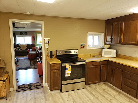 Looking for a quiet, comfortable home? Look no further. This 2 BD, 1 BA block home has many new features. In town living, easy to maintain yard, new roof ice damn protection under whole job, appliances, water heater, fresh paint, solid surface floors, doors, windows. Large kitchen with ample storage. Remodeled bathroom, laundry room, mud room and bedroom. Easy to heat and cool. Lg deck for relaxing and your grill.