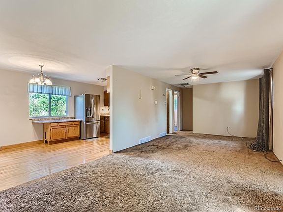 Walk into instant equity. Priced below appraised value. Back on the market with no fault of the seller! Passed FHA appraisal. New concrete patio just went in backyard. Roof is 7 years old with transferable warranty. You'll find mature fruit trees and large lot with enough room to build a garage. RV/boat pad. Basement has rough in for further expansion. Not many single family options at this price point in this area. Easy commute to I25, restaurants and shopping. Come add the finishing touches to make this house a home.
