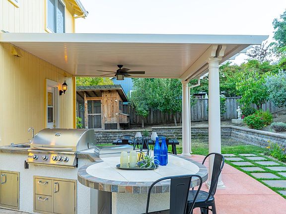 Located in Napa's desirable Browns Valley neighborhood, this spacious 5-bedroom, 3-bathroom home sits on a generous 0.6-acre lot with vineyard and beautiful hillside views. The landscaped front yard and covered porch welcome you into a warm living room featuring hardwood floors, a pitched ceiling, and a cozy fireplace. Just a few steps up, the main level offers a formal dining room, laundry room, and a kitchen that opens to the family room and a covered back patioperfect for indoor-outdoor living. The primary suite is also on the main level and features vaulted ceilings, a walk-in closet, and a luxurious bathroom with a jetted soaking tub, tiled stall shower, and private toilet room. An additional bedroom or office with a full bath completes the main level. Upstairs, you'll find three spacious bedrooms and a full bathroom with dual sinks and shower over tub. The backyard is an entertainer's paradise with a built-in BBQ, covered patio, gardens, fruit trees, chickencoop, and a lovely Gazebo up above, along with approximately 1,000 Cabernet vines ideal for a hobby vineyard with stunning views of the hills. A 3-car garage with extra storage along the back wall completes the property. This exceptional home blends comfort, functionality, and a true Napa Valley lifestyle.