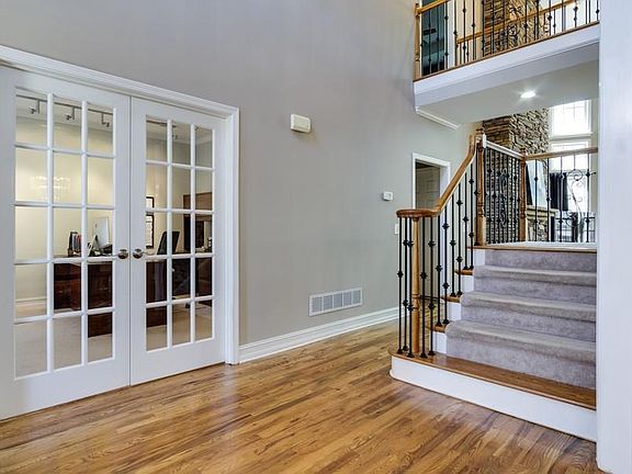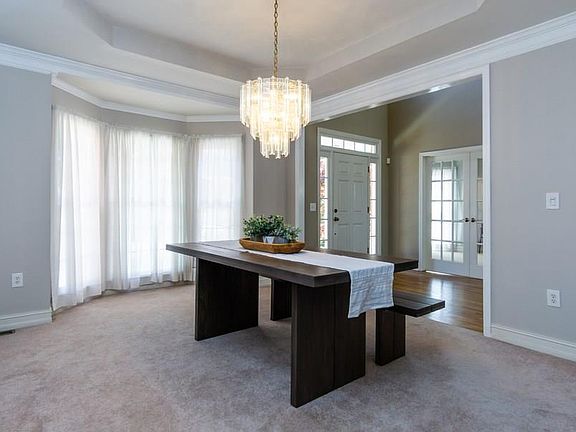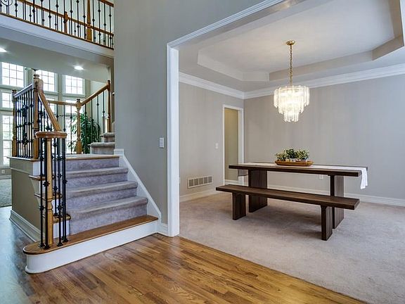 - Interior: 2-Story Foyer, Entrance Foyer, Trey Ceilings, Wall/Wall Carpet, 9 ft + Ceil Main, Bookcases, Disp Attic Stairs