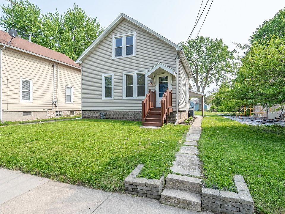 This sweet Stevens Park Neighborhood home packs a punch! Kitchen remodel with character - cabinet refresh, antique farmhouse drainboard sink, updated flooring, updated fixtures! Low-maintenance vinyl siding and windows. Spacious formal dining room. Large 24x26 garage and full basement for your storage needs. Roughly 27x23 (knee wall to knee wall) unfinished attic gives exciting potential to add finished square footage - perhaps a primary bedroom suite, additional living space, or secret cat command center? So much green space in the backyard. Just blocks from the lake, walking distance to Menominee Park, tennis courts, zoo, playground, and walking paths! Offers to be presented to Seller 5/30/2023.