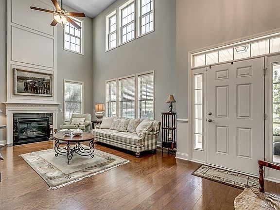 - Fireplace, Window Treatments, Breakfast Area, Kitchen Island, Stainless Steel Appliances, Solid Surface Counters