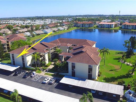 Gated community in South Fort Myers. Spacious 1050 sq ft corner unit is updated with all granite counters. Updated kitchen cabinets and appliances. Condo has luxurious decor. Updated tile floors in Living area and bedrooms. Tile throughout all wet areas. Lovely lanai with lake and landscaped views and extra green space between condo buildings. One of 4 pools just across the street. This community offers tons of activities at the main clubhouse. See photo descriptions for more details. The complex is located a short distance to Fort Myers Beach, Bunge Beach and Sanibel Island. Plenty of shopping and restaurants available with a short distance drive or bike ride. Extra storage and carport included. Move right in and start enjoying the Southwest Florida lifestyle.