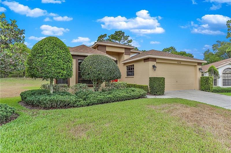 Diamond in the rough! This custom Bluebird model is located on cul-de-sac in the upscale, 55plus community, Wellington at Seven Hill. Make this home your own and enjoy country club living at its' finest. Restaurant, bar, fitness, pool, spa, tennis, and SO MUCH MORE. Bay windows, vaulted ceiling, open floor plan, 3 bedrooms, 2 baths. Located with easy access to Tampa, Orlando, and the Gulf of Mexico. 45 min. from Tampa Int'l. Community replacing roof 2017 - buyer replaced a/c 2015.