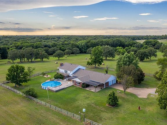 This beautiful homes sits 1/3 back on the property behind mature oaks overlooking the front and back pastures. Back pasture topography is begging for a large pond to be built and is set up perfectly for this. Outside the home you will find a 50x50 shop with concrete floors and 220 electric for welding along with 110 outlets everywhere. There is a separate 45x50 barn perfect for storing tractors and trailers. Small pond in front pasture. The home is 3,871 Sq Ft. tri-level. Lower level has a massive den perfect for entertaining and also has a wood burning fireplace. Next to lower level den is a bedroom with full bath that can also be a study. Main level has Kitchen with dining room off to side along with a breakfast nook. Main living with utility and half bath also on the main level. Upstairs is a Master with full bath and walk-in closet along with two other bedrooms that share a full bath down the hall. 28' diameter above ground pool with deck! Too many things to list! New carpet!