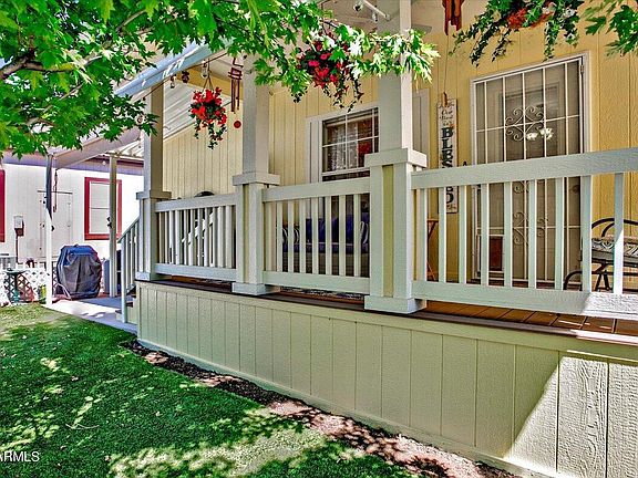 It's time to own your own piece of paradise! Welcome to this 2 Bed / 2 Bath model BRIMMING with charm in 55+ community of Orchard Ranch! Indulge yourself in amenities at the Clubhouse, Pool/Spa, Pickleball, Fitness Room, & more All Included in your monthly Lot Lease of $550. The front and back are each framed with a delightful porch! Whereas, the front is a cozy spot to visit with neighbors, the rear covered deck is buffered with greenery and white picket fence to create a haven for outdoor living. Step inside to a newly opened up living area featuring NEW stainless appliances, bright new counters, and coordinating laminate flooring that set the tone for today's décor. The primary bedroom features a private attached bath with walk-in shower. Second bedroom has ample space for office, craft room or even a murphy bed for guests. Want extra storage? This home has a shed to hold your cherished items or work on your favorite hobby. Come see ALL this sweet home has to offer! 18 X 43 Buyer to verify size.