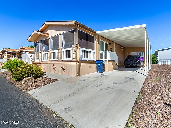 Come see this beautiful 946 sqft Cavco home with 2 Bedrooms and 2 Baths, a Screened Front Porch and 2 car Carport. Located in the Orchard Ranch 55+ community on Highway 69, with amenities including a Clubhouse, Pickle Ball Court , Pool/Spa, Gym Room and more!Home shows true pride in ownership. Spacious floorplan with a kitchen that features ample cabinet space and a cozy dining area. Also includes it's own laundry setup with both a Washer and Dryer and a large 9'x9' shed for additional storage.With a prime location between Dewey and Prescott Valley, it is just minutes from all the amenities you could need, this home is truly a hidden gem.Lot Lease is $550/month, buyers must be prescreened and approved by the park management.