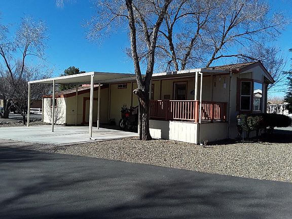 2006 Cavco manufactured home is on a corner lot with side by side parking. It has a great front porch to wave to your friends and neighbors. It is close to pickleball courts, pool, and activities. This over-sized park model offers a roomy, comfortable, and sensible lifestyle. The rent is $400 per month. It includes water, sewer and trash. Lot is a great size with nice shade trees. It has been freshly painted inside and out in 2016. The refrigerator is only 2 years old. The storage shed is 11X12. The home has a double awning and rain gutters. The home has wood blinds on all windows except the doors. It has a screen on front door when the weather is perfect. Carpet in bedroom was replaced in 2015. Yard is easy to maintain. Great home in a great 55+ park. A must see to appreciate.