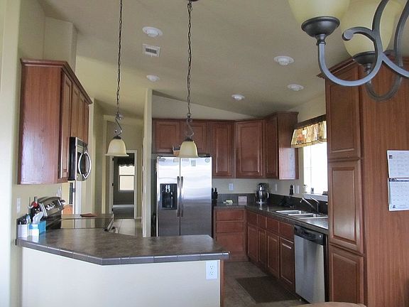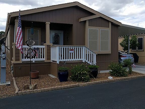 2013 CAVCO Manufactured Home located in Orchard Ranch Resort that has many amenities, including a salt water pool and spa, plus pickleball courts, gym, horseshoes, bocci ball, shuffleboard, numerous clubhouse activities, woodshop, community garden, billiards, library, Park RV/boat storage. 2 Bedrooms, PLUS double door enclosed DEN, 2 full Bathrooms Plus laundry room. Plus upgraded shed at carport. Vaulted ceilings in every room and 2 walk-in closets. Move in ready all electric home has heater a/c unit, ceiling fans, all new inside window coverings, sunscreens, gutters, new paint, new front storm door. Washer, dryer and stainless steel kitchen appliances (refrigerator, dishwasher, microwave and oven/stove) included. $380.00 space rent, No HOA dues. Utilities and property taxes are homeowner's responsibility. Please call (949) 606-5649 or knock on door to view. Open house this Sunday 1:00 p.m. to 6:00 p.m.