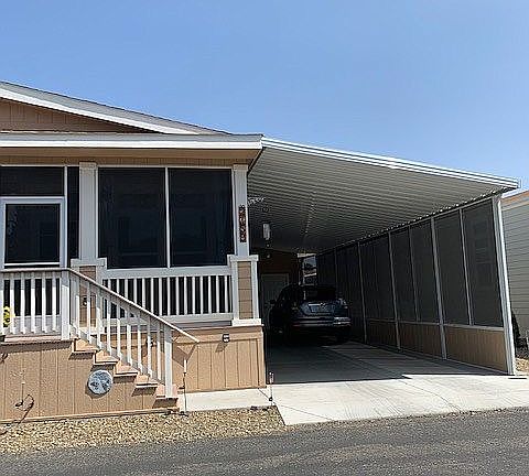 Orchard Ranch 55+ Resort Community Prescott Valley AZ > Beautiful 2015 Cavco Home with 9' high ceilings, stainless steel kitchen appliances, 17 slide out kitchen shelves, lazy Susan in corner kitchen cabinet, accent lights above & below upper kitchen cabinets, 3 solar tubes, ceiling fans in living room & bedrooms, handicapped height toilets, double sinks, linen closet in master bedroom, 36" wide interior & exterior doors, insulated shed with utility sink, storage shelves & ceiling fan, screened in front porch with two ceiling fans and carport is screened in on open side.