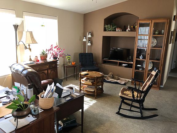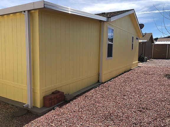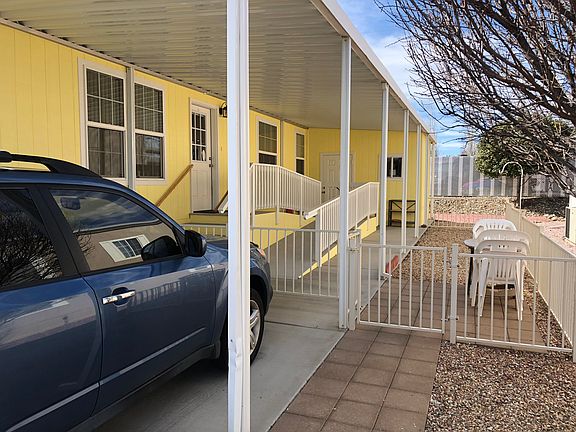 My home has a nice airy feeling when you walk in. The carpeted living room has built-in cabinetry with an inset for a TV. The kitchen has lots of cabinets, the floor is tile and the countertops are laminate. The dining room directly off the kitchen is spacious. The separate laundry room has a washer and dryer and many cabinets and exits to the handicap ramp and fenced side yard. My home is carpeted from the living room through both bedrooms. The guest bath has a shower/tub and tile floor while the master bath has a shower, double sink, walk-in closet and tile floor. The ceilings are high with ceiling fans in both bedrooms. The shed has heavy duty shelving. There is no resident behind the private rear yard. I have a carport plus an adjacent area for an golf cart. High quality roof shingle were installed last fall. The entire exterior was painted a year ago. A new heating/air conditioning system was installed six months ago and has 4 years remaining on its warranty. There are no HOA fees. Lot rent is $400/mo plus water/sewer/electric/trash. My home will be available for occupancy anytime after April 10.