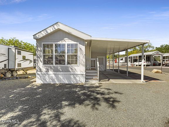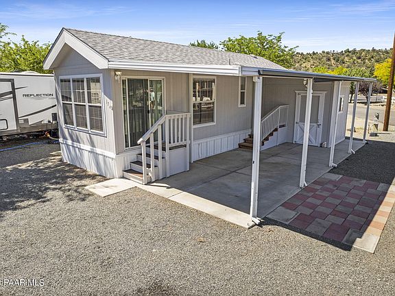 Immaculate MOVE-IN READY park model home in the ever popular Orchard Ranch 55+ Park. Perfect for seasonal or year round residents. 1 bedroom, 1 bath and comes completely furnished with the Lot rent paid in full until April of 2024! Brand new roof, freshly painted inside and out, new hvac in 2019 and beautiful stainless steel appliance package. This home also features a private shed with built in laundry/utility room and washer/dryer are included with the sale. Come see the best kept secret in Northern Arizona for Active Adults. This amazing park is home to a huge list of amenities and activities for active adults including spa, pool, club house, community kitchen, exercise center, game room, handball courts and frequent community activities! Schedule a showing and come see us today!!