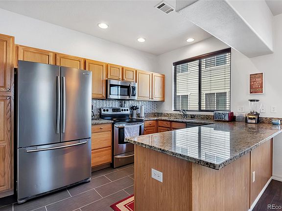This is probably the most stunning townhome in the area. It is an end unit, very bright & vaulted with an open main level floorplan. From the large dining room to a cozy sitting area to the large great room with a fireplace and deck access, this home has plenty of room for entertaining or just settling in and enjoying being home. Close to everything & a short ride to downtown w/easy access to DIA or to any of the major highways. The home has been upgraded to the hilt with slab granite counters, perfect neutral paint and updated lighting/ceiling fans. The flooring varies from wide plank modern laminate to beautiful grey tile to plush carpeting.The 2 upstairs bedrooms have plenty of storage space and the 2 bathrooms make it ideal for independent kids or roommates. The master suite includes a walk-in closet and 5 piece stunning bath with an oversized shower and a private deck for enjoying the sunrise. The extra finished room in the basement is great as a study/private gym/hobby room. There are closets everywhere so storage is not a problem. The home has energy efficient features. All appliances are included. Not a thing needs doing, just move in and enjoy. Can accommodate a quick closing if needed.