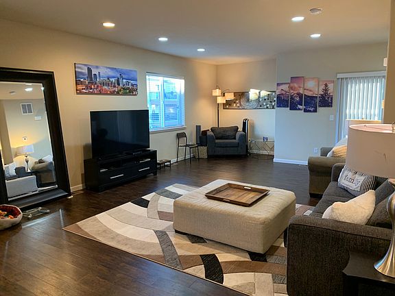 Built in 2018, this beautiful townhome comes with all your desired features. Hardwood flooring on the main floor as well as a half bath, stainless steel appliances and granite countertops. The entryway boast both space and a bathroom perfect for mudroom use and access to a two car insulated garage. Upstairs has a large master bedroom with a five piece master bath and large walk in closet. And the second bedroom is bright and sunny and has a full bathroom in the hallway. 15 minutes from downtown Denver (all highway driving). Right next-door to Colorado's best farmers market open all summer and fall. 15 minutes to the Thorton outlets and any and every store you could possibly ever need! 10 minutes to the airport. This beautiful treasure offers small town living right next to the big city. Owner pays for gas and electric. $750 pet deposit No smoking in home 2 car garage.