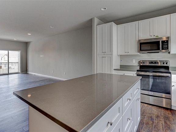 When you enter the home from the garage you go into the large mudroom with a large storage closet. The 2nd floor is the main living area. This is so spacious with an open floor-plan. The kitchen boasts 42" upgraded kitchen cabinets, Quartz counter-tops and a eat in island. The kitchen overlooks the dining area and living area. Stainless Steel kitchen appliances are included as a standard feature. The main living area has laminate wood flooring throughout. The spacious living room walk's out to a covered deck which is also a standard feature. The 3rd floor features all the bedrooms. The master bedroom has a his and her walk-in closet and a 5 piece master bath. The spacious master retreat walks out to your very own private balcony. The upper level also has a full bathroom with tile floors, tile bath surround and quartz counter-tops. The community features an outdoor pool, basketball court, playground and walking trails.