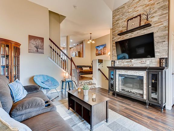 This well cared for three level condominium will not last long. Upon entering the main level, you are greeted with vaulted ceilings, an open floor plan with wood floors and a newer rock trimmed gas fireplace. Across from the entrance the open area steps up to the kitchen boasting 42" upgraded cabinets, stainless steel appliances, a quant dining nook and main level bathroom, all overlooking the main entry, living area, and covered front deck. From here, you can choose to go upstairs to the living quarters or down stairs to a storage area and two car garage. The second level hosts the master bedroom with a master 5-piece bathroom, new tile and fresh paint, walk in closets for him and her, and a private balcony. This level offers the convenience of another bedroom, a full bathroom and washer and dryer. The loft rises higher with a large closet and better views! The community features an outdoor pool, basketball court, playground and walking trails. Enjoy the best views of a Colorado sunset in the front range! Multiple units in the area, but none with this location! Quick access to Highway 85 leading into Denver.