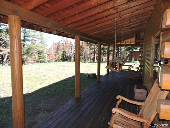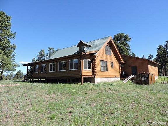 This "Real Log Home" will melt your heart with a quaint country feel and a view of the Mt. Blanca Peaks to truly sit and enjoy from the front porch! The home has 1747 sq ft including loft, master suite and full bath. Comfy living/kitchen area. Guest bed and 3/4 bath. Sun room porch with hot tub.A wonderful wood stove for those snowy winter days along with propane heat and electric wall mount heater. Home has 1 car over-sized garage(16 ft door, 900 sq ft) and a handy utility shed. The cabin offers a true mountain feel while relaxing on the covered deck! You'll never tire of the views looking out across the meadows at the huge Ponderosa Pine tree's and adjacent common land adjoining the back boundary! Cabin includes fresh water well(140 ft deep), septic, electricity. Nicely situated in the middle of the Park for easy year round access.The cabin is fully furnished. Home was not affected by the Spring Fire, some surrounding tree's were but not in immediate yard.