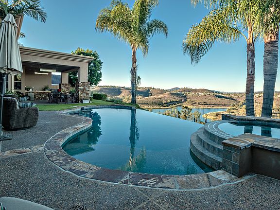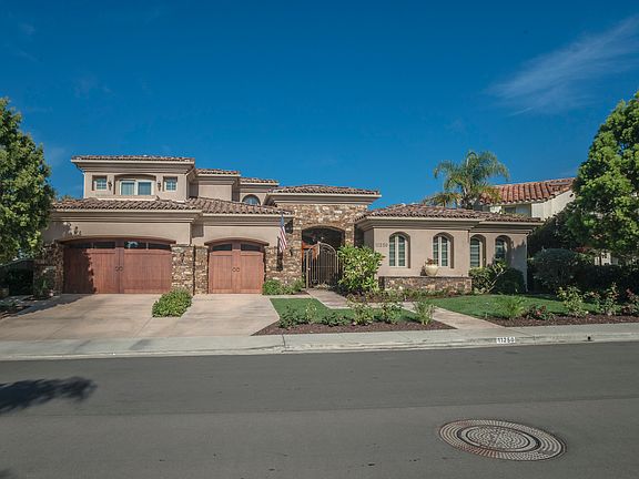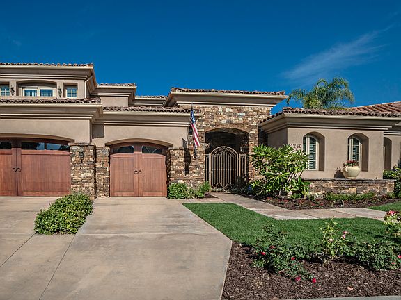 Open floor plan offering you every amenity you desire. Kitchen features large island with vegi sink and bar seating, built in KitchenAid fridge, Electrolux dual ovens, Thermador 6 burner gas range, hood and microwave, warming drawer, Bosch dishwasher, appliance garage & walk in pantry. Large open breakfast area & butlers pantry. Dining room offers climate controlled walk -in wine cellar and French doors to side patio with fountain. Huge laundry room with tons of storage, granite counters & laundry sink. Oversized secondary bedrooms with custom walk in closets & beautiful bathrooms. Sprawling master suite features gas fireplace, sliding glass doors to the back patio, ceiling fan & custom window coverings. Huge walk-in closet has 2 entrances, built in dual sided dresser, cabinetry, shelving, drawers & 2 laundry hampers. Luxurious master bathroom with travertine floors, marble counters, dual sink vanities, oversized marble shower with 2 shower heads, large hydro spa soaking tub, separate WC with additional storage cabinetry. Home gym or nursery with plantation shutters and sliding glass door to exterior.