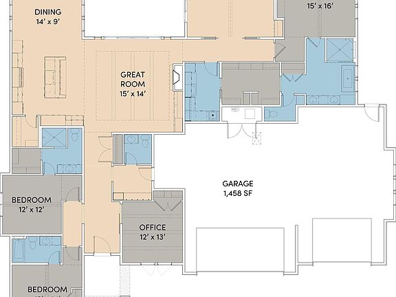 - Bath-Master, Bed-Master Main Level, Split Bedroom, Den/Office, Great Room, Rec/Bonus, Double Vanity, Central Vacuum Plumbed, Walk-In Closet(s), Pantry, Kitchen Island, Quartz Counters, Number of Baths Main Level: 3, Bonus Room Size: 18x18, Bonus Room Level: Main