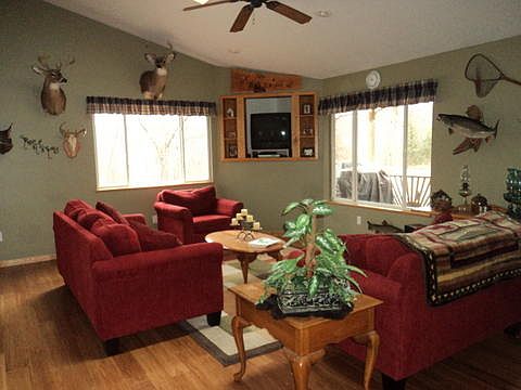 Adjacent to hundreds of acres of State Land expands your opportunities when you live in this adorable 3 BR home tucked away on 20 acres! The winding driveway, apple trees, and rolling hills of mostly oaks & maples embrace this park-like setting for nature lovers that seek privacy, comfort & convenience of not being too far off the grid! Custom built with cathedral ceiling, skylights, hardwood floors, new carpet in bedrooms, covered & partially enclosed front porch, and a 32x28 pole barn with lean-to. Economical to heat & very well maintained, just minutes away from Hubbard Lake and DNR Trails! Furnishings are available separately. This is a perfect home, get-away or hunting paradise, especially with the additional state land!