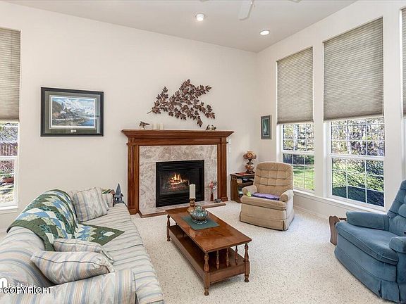 Immaculate home opens into a spacious great room w/vaulted ceilings, gas fireplace & walls of windows that flood the space with light. Features a second living room with a cozy gas fireplace, and a den/office. Upgraded kitchen cabinets and solid surface countertops enhance the interior. Fresh interior & exterior paint, mature lawn and perennials enhance the curb appeal of this beautiful property.