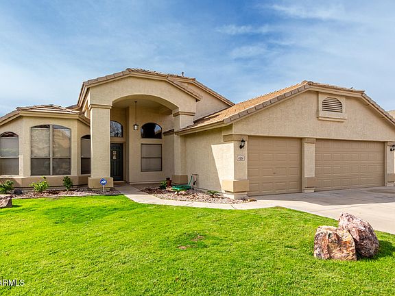 Charming 4-bedroom home located in Meridian Point! Displaying a 3-car garage, an RV gate & a well-cared landscape. Inside, you'll find a welcoming living/dining room w/ a neutral palette, vaulted ceilings, abundant natural light streaming through a charming bay window, & a well-placed mix of carpet and tile flooring. The great room has direct access to the backyard. The eat-in kitchen showcases white cabinetry, SS appliances, tile backsplash, granite counters, a pantry, an island w/ a breakfast bar, & a breakfast nook. The main bedroom hosts a walk-in closet, a private bathroom w/ dual sinks & separate shower/tub. Continue to the backyard, where you can relax on the covered patio, a sparkling pool & enjoy ample space for gatherings! Don't miss this great opportunity!