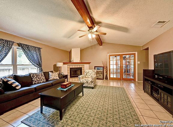 Warm, inviting, centrally located, one story, 3 bedroom home with great street appeal, new roof & windows, all within Northside ISD. Open living/dining areas with tiled flooring & fireplace adjoins the bright kitchen with a walk-in pantry & stainless/black appliances. Plus a grand spacious office/flex addition with built-ins & bamboo flooring. Enjoy the privacy of a natural greenbelt, near the dog friendly Oxbow Park Trailhead/Leon Creek Greenway offering paved trails for hiking & cycling plus a playground!