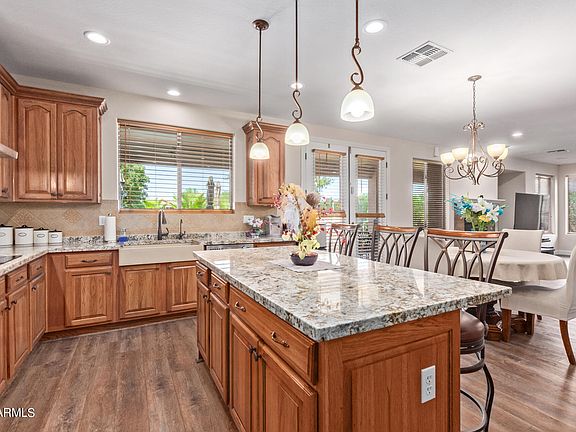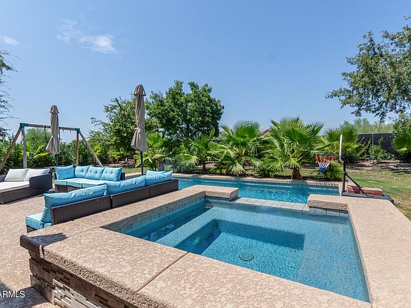 : Welcome to this stunning home in East Mesa! This spacious 5-bedroom, 3.5-bathroom gem is situated on a large lot with plenty of room to roam. As you step inside, you'll notice the high ceilings and open floor plan, creating a welcoming atmosphere for you and your guests. You'll enter into a separate living room with a fireplace that provides a cozy retreat for quiet evenings or intimate conversations. Perfect bedroom with ensuite bath downstairs for your guest to be comfortable when they visit. The heart of this home is the beautifully updated kitchen, featuring modern appliances, ample storage space, and a walk-in pantry. The adjacent great room offers a comfortable space for relaxation and entertainment, perfect for hosting family gatherings/cozy nights in next to the fireplace The master suite is a true sanctuary, complete with a two-way fireplace, extra sitting/exercise/office space, and his and hers closets. The ensuite bathroom boasts split his and hers sinks, ensuring everyone has their own space. With a game room/loft upstairs, there's plenty of room for play and entertainment. Additionally, a separate living room with a fireplace provides a cozy retreat for quiet evenings or intimate conversations. One of the highlights of this home is the newly installed pool and spa in 2021, offering a refreshing oasis during hot summer days. The large lot also provides privacy and tranquility, with no neighbors behind and a park with a play area just across the street. Other notable features include updated flooring, a new AC unit, a new water heater, and updated garage doors. The exterior has been recently painted, lending a fresh and modern curb appeal. This home truly has it all - from the functional layout to the stylish upgrades, every detail has been carefully considered. Don't miss the opportunity to make this your dream home.