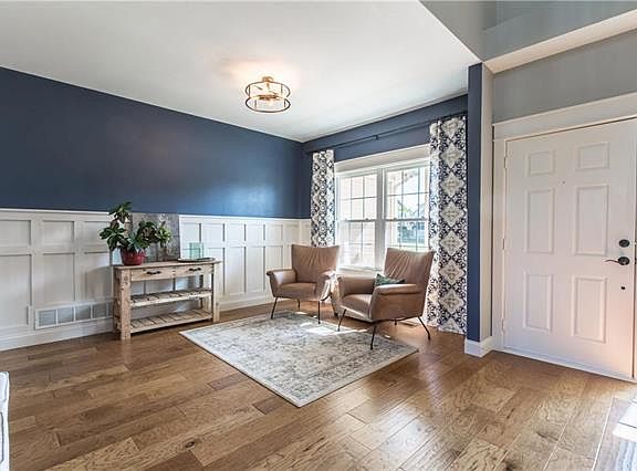 Check out this beautiful 5 bed, 3 bath home! Tons of updates & beautiful features throughout! Large open concept living/dining/kitchen. Amazing 2 story fireplace and wainscoting detail! Large kitchen w/ ample cabinet space walks out to deck overlooking fenced yard & backing to farmland! Head upstairs to 2 guest rooms, guest bath & master suite. Large master features beautiful tray ceiling, tons of natural light, double vanities, whirlpool tub & HUGE closet! Downstairs find another guest room and walk out basement!