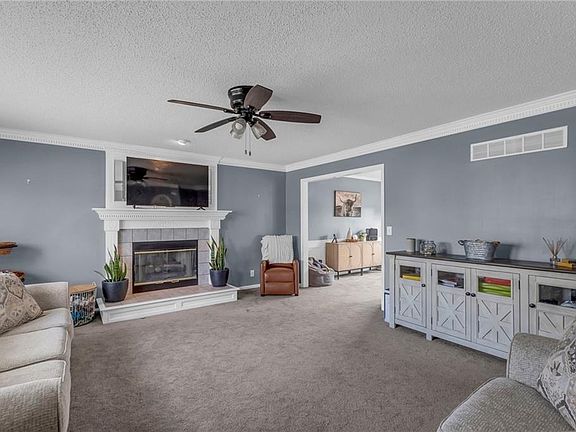 - Features: Carpet, Ceiling Fan(s), Fireplace