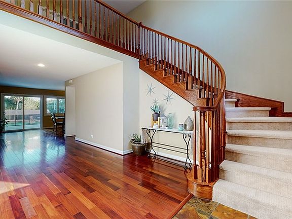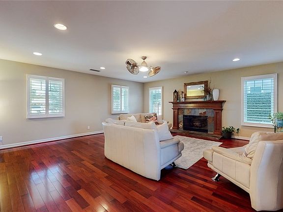 This Charming Craftsmen-Style Rossmoor Home has a great floor plan and spacious backyard with pool. The warm and inviting large family room has a beautiful fireplace, wood shutters and opens into the kitchen. The large kitchen is centrally located with detailed custom cabinetry, stainless steel appliances and large island. The hardwood floors throughout are gorgeous. The downstairs features the family room, kitchen, dining room, hallway bathroom, two bedrooms with jack and jill bathroom. The upstairs features a loft/landing area, master bedroom, master bathroom and guest bedroom with its own bathroom. The spacious master bedroom has a walk-in closet and see through fireplace to master bathroom. The master bathroom has a large soaking tub, walk-in shower and double sink vanity. The relaxing and over-sized backyard has a built-in bbq, large sparkling pool, fire pit and grassy lawn area. This home has so much to offer its a must see.